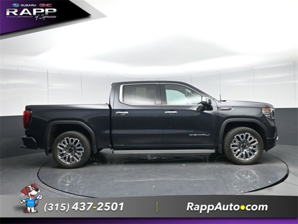 ONE OWNER, Recent Oil Change, Dealer Detailed, Dealer Inspected, Sierra 1500 Denali Ultimate, EcoTec3 6.2L V8, 10-Speed Automatic, 4WD, Titanium Rush Metallic, Alpine Umber Leather, 120-Volt Instrument Panel Power Outlet, 16-Way Power Driver Seat Adjuster w/Lumbar, 16-Way Power Passenger Seat Adjuster w/Lumbar, 2 Charge/Data USB Ports Inside Center Console, 2 Type-C Charge-Only Rear USB Ports, 2 USB Ports, Auto-Locking Rear Differential, Bed View Camera, Bose Premium Series w/12-Speaker System, Chrome Recovery Hooks, Color-Keyed Carpeting Floor Covering, Compass, Deep-Tinted Glass, Driver Memory, Electric Rear-Window Defogger, Electrical Steering Column Lock, Enhanced Automatic Emergency Braking, Floor-Mounted Center Console, Front Rainsensing Wipers, GMC Connected Access Capable, HD Surround Vision, Heads-Up Display, Heated 2nd Row Outboard Seats, Heated Driver & Front Outboard Passenger Seating, Heavy-Duty Air Filter, Hill Descent Control, Hitch Guidance, Hitch Guidance w/Hitch View, In-Vehicle Trailering App, Integrated Trailer Brake Controller, Keyless Open & Start, LED Cargo Area Lighting, Multicolor 15 Diagonal Head-Up Display, MultiPro Audio System by Kicker (LPO), Navigation System, OnStar & GMC Connected Services Capable, Perimeter Lighting, Power Door Locks, Power Front Passenger Windows w/Express Up/Down, Power Front Windows w/Driver Express Up/Down, Power Rake & Telescoping Steering Column, Power Rear Windows w/Express Down, Power Sliding Rear Window w/Rear Defogger, Power Sunroof, Preferred Equipment Group 5SB, Push Button Start, Rear Cross Traffic Braking, Rear Pedestrian Detection, Rear Wheelhouse Liners, Remote Engine Starter, REV Hard-Folding Tonneau Cover (LPO), SiriusXM w/360L, Spray-On Pickup Bed Liner w/Denali Logo, Steering Wheel Audio Controls, Super Cruise, Theft Deterrent System (Unauthorized Entry), Trailer Camera Provisions, Trailer Side Blind Zone Alert, Trailer Tire Pressure Monitor System, Trailering Package, Ultrasonic Front & Rear Park Assist, Universal Home Remote, Vader Chrome Header w/Signature Denali Grille, Ventilated Driver & Front Passenger Seats, Wi-Fi Hotspot Capable, Wireless Charging, Wireless Phone Projection. Titanium Rush Metallic 2023 GMC Sierra 1500 Denali Ultimate 4WD 10-Speed Automatic EcoTec3 6.2L V8This vehicle may or may not have an open safety recall. Please visit https://vinrcl.safercar.gov/vin/ to find out more information on recalls pertaining to this vehicle.