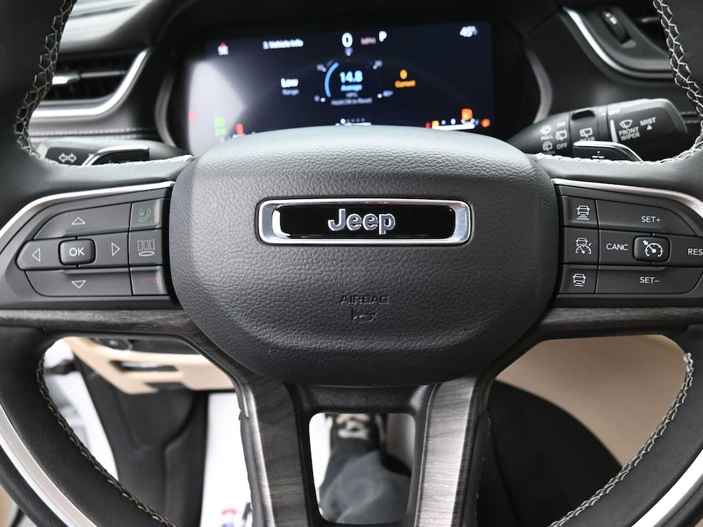 Navigation, Heated Driver Seat, Heated Rear Seat, Premium Sound System, Remote Engine Start Jeep Limited with Bright White Clearcoat exterior and Wicker Beige/Black interior features a V6 Cylinder Engine with 293 HP at 6400 RPM*.